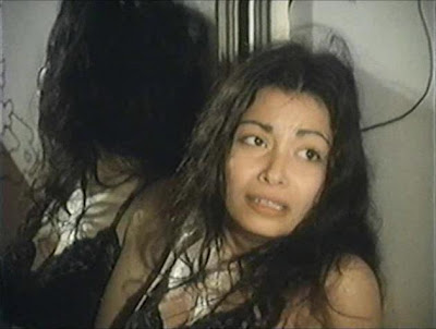 A pair of cat burglars, a man (Tom Hart) and a woman with the craziest, biggest hair I've ever seen (Lyllah Torena), break into the home through a sky light on the roof. They steal money, terrorize poor Alice with a gun, stick her arm under scalding hot water and then shoot her up with heroin. These sequences completely stand out from the comparably boring soft porn first forty minutes by employing distorted sounds, strange music and even stranger experimental camera angles to capture a truly demented, nightmarish feel. Some shots are out of focus, the camera bobs back and forth right into characters faces and even tilts backwards 180 degrees at one point. Unfortunately, once the burglars are out of the picture, the film becomes dull and inept once again. Special cautionary note to all you psychos: It's probably not a good idea to speed when you have a dead body in the trunk of your car.