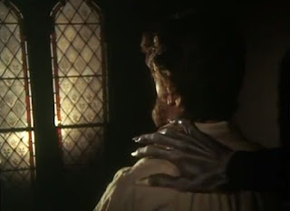 With this 45-minute offering began a series of “Ghost Story for Christmas” films that became a holiday tradition in the UK from 1971 until 1978. Each were shot on 16mm and in color, ran less than an hour (some were as short as 30 minutes) and played on BBC 1 either right before or right after Christmas. The first five of these productions, including this one, A WARNING TO THE CURIOUS (1972), LOST HEARTS (1973), The Treasure of Abbot Thomas (1974) and THE ASH TREE (1975) were adaptations of M.R. James ghost tales and were directed by Clark. The director followed those with THE SIGNALMAN (1976); an eerie adaptation of a Charles Dickens story, and then STIGMA (1977), an atypically bloody offering which was based on a new original script and not a classic short story. The initial series wrapped up with Derek Lister's THE ICE HOUSE (1978), which was the only one not directed by Clark and also based on an original script. In 2000, the Ghost Story for Christmas banner was revived for a four-part TV special starring Christopher Lee as James. BBC 4 would bring it back yet again in 2005, starting with Luke Watson's A View from a Hill. This one's an adaptation of the story The Stalls of Barchester Cathedral, which was contained in James' second collection of stories titled More Ghost Stories, published in 1911.